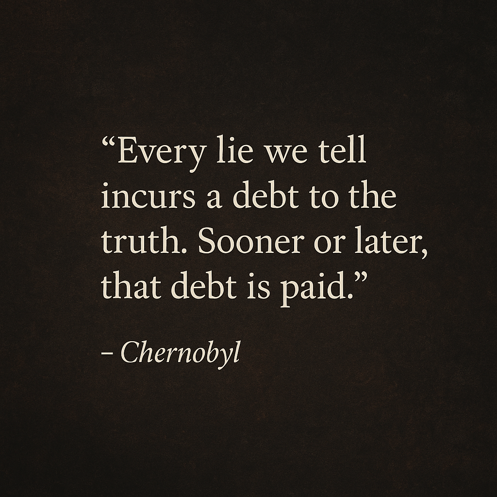 “Every lie we tell incurs a debt to the truth. Sooner or later, that debt is paid.” – Chernobyl